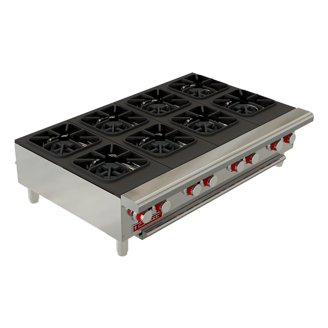 8 quemadores octagonales sólidos en hierro fundido de 24,000 Btu/h c/u