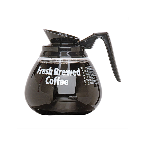 Jarra de cristal con mango marca Grindmaster, diseñada para uso con percoladoras. Ideal para servicio continuo de café, ofrece resistencia térmica, manejo cómodo y una capacidad adecuada para entornos comerciales como cafeterías, restaurantes y estaciones de autoservicio.