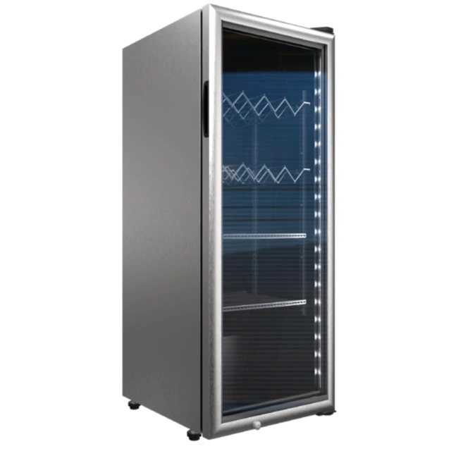 Enfriador vertical de 1 puerta de cristal con tecnología dual-zone, control digital y conectividad inalámbrica vía App Imbera Link. Ideal para mantener cervezas entre –2 °C y 5 °C y vinos entre 5 °C y 18 °C con monitoreo remoto desde tu smartphone. Su diseño compacto y elegante permite ubicarlo en cualquier espacio del hogar o negocio, ofreciendo conservación óptima y visibilidad clara de tus bebidas.