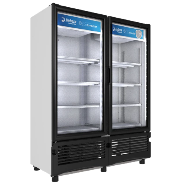 Refrigerador vertical de 2 puertas de vidrio con tecnología EcoInverter, modo ECO y control digital, diseñado para exhibir y conservar grandes volúmenes con máxima eficiencia energética.