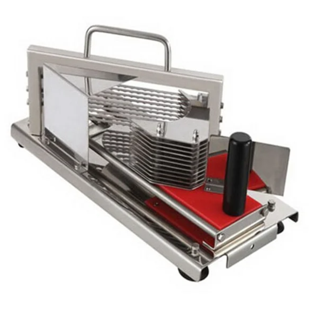 Máquina manual profesional para el corte de tomates, ideal para cocinas comerciales, restaurantes, taquerías y comedores industriales. Diseñada para obtener rebanadas uniformes de forma rápida, segura y eficiente.