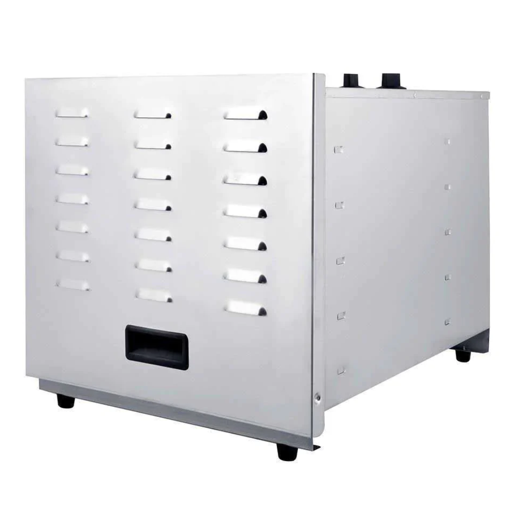 Deshidratador profesional ideal para conservar alimentos de forma saludable, manteniendo sabor, textura y nutrientes. Perfecto para frutas, verduras, hierbas, flores y más, tanto en uso comercial como semiindustrial.
