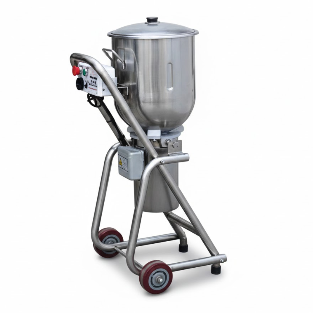 Licuadora industrial de volteo diseñada para cocinas industriales, comedores, restaurantes y procesos de alta producción. Ideal para mezclas continuas, preparación de salsas, cremas y alimentos líquidos en grandes volúmenes, con vaciado fácil y seguro.