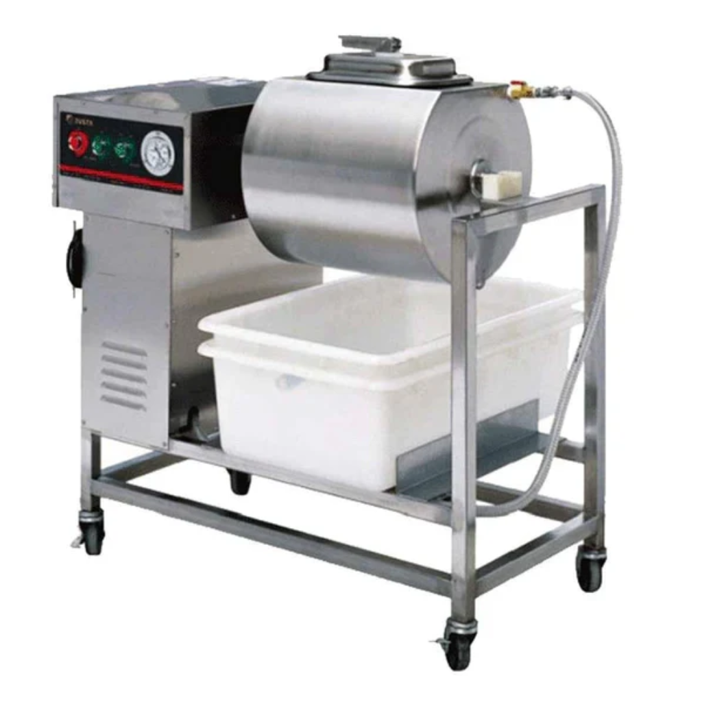 Máquina marinadora profesional al vacío diseñada para maximizar la absorción de líquidos y condimentos en carnes y alimentos. Ideal para carnicerías, restaurantes y procesos de producción que requieren marinado rápido, uniforme y de alta calidad.