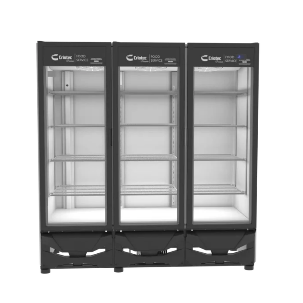 El refrigerador vertical Criotec CFX-64 3P es un equipo comercial de gran capacidad diseñado para la conservación y exhibición eficiente de bebidas, lácteos, embutidos y otros productos refrigerados en negocios de alto volumen como tiendas de conveniencia, supermercados y restaurantes. Ofrece tecnología de control inteligente de temperatura i-TEC, iluminación LED de alta intensidad y tres puertas de cristal de alta eficiencia, garantizando visibilidad óptima, conservación uniforme y funcionamiento confiable incluso con aperturas frecuentes.