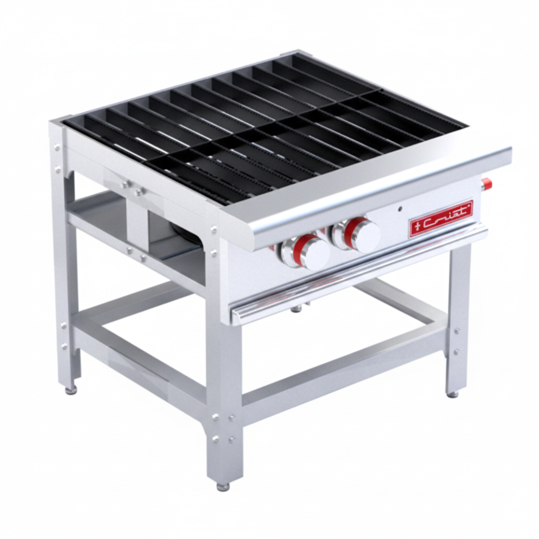 - Parrillas de hierro fundido: estabilidad superior para ollas industriales.