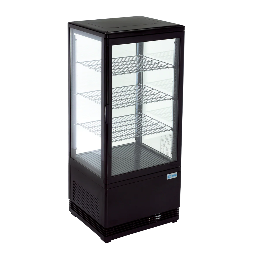 El refrigerador panorámico MIGSA RT-78L está diseñado para exhibición y conservación eficiente de bebidas y productos refrigerados en cafeterías, tiendas de conveniencia, restaurantes y negocios comerciales. Su puerta recta de cristal, iluminación LED y diseño compacto en color negro permiten una excelente visibilidad del producto, manteniendo una temperatura estable para una correcta refrigeración durante la operación diaria.
